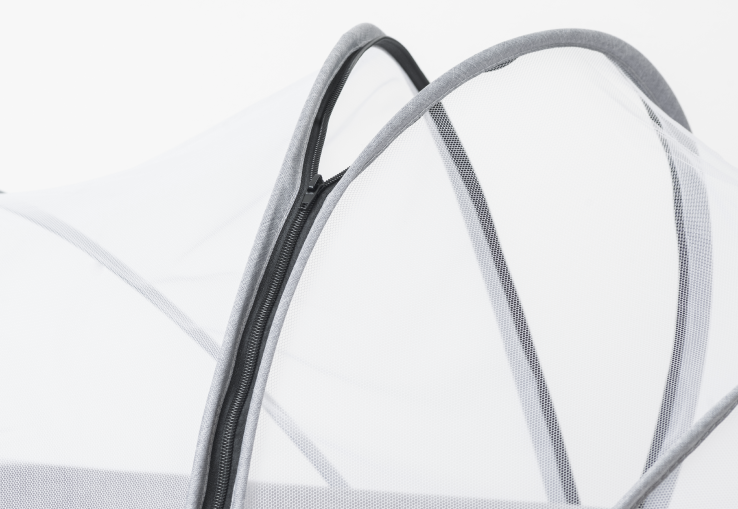 Incluye un colchón de soporte firme y un mosquitero con cremallera que mantiene el espacio fresco y protegido.