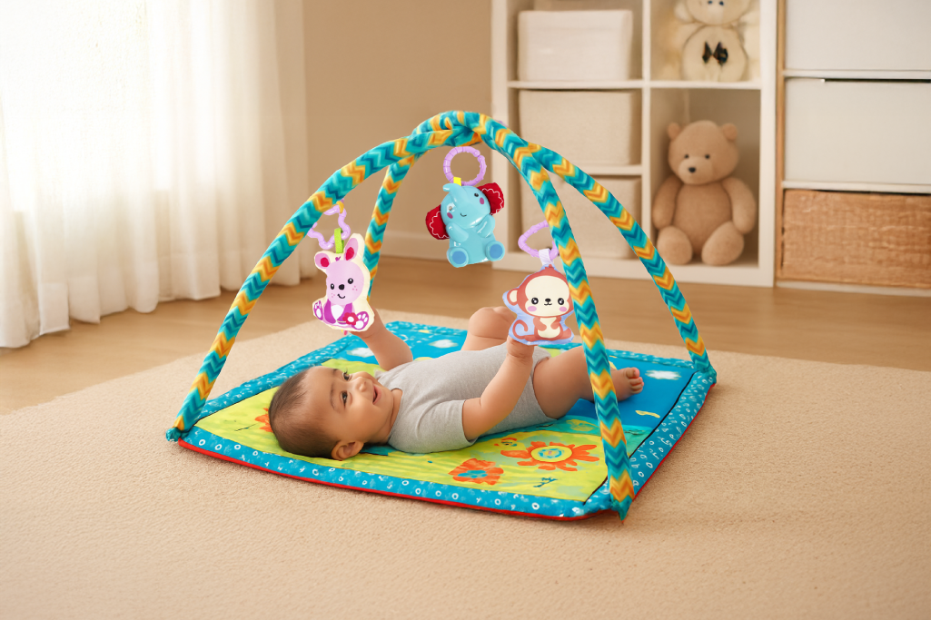 Los juguetes musicales e interactivos estimulan la audición y la coordinación, mientras que sus texturas suaves y colores vibrantes favorecen la estimulación visual y táctil.