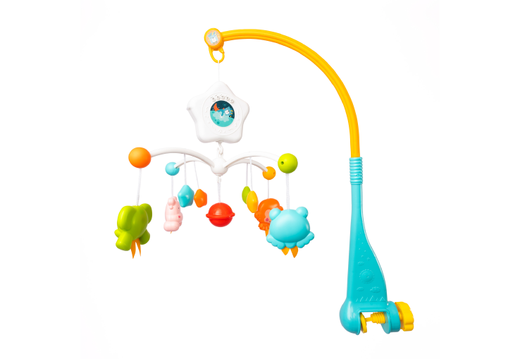 Estimula y relaja a tu bebé con melodías, luces suaves y juguetes giratorios. Se adapta a la cuna y favorece el desarrollo sensorial desde recién nacido. Sus tiernos juguetes colgantes giran al ritmo de la música, captando la atención del bebé y motivando sus primeros intentos de alcanzar objetos.