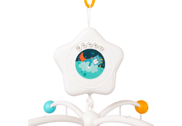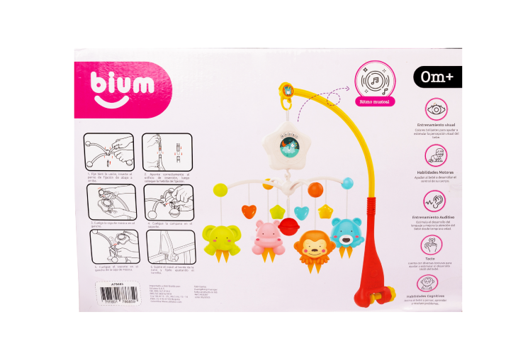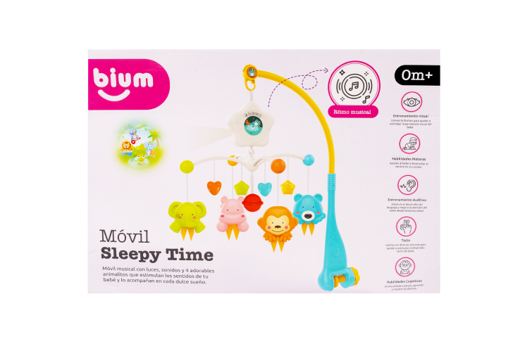Transforma la cuna en un espacio mágico. El móvil BIUM combina luces suaves, melodías relajantes y tiernas figuras de animales que giran para captar la atención de tu bebé desde el primer día. Estimula sus sentidos, despierta su curiosidad y lo invita a explorar con cada movimiento.