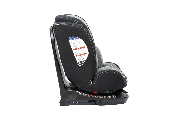 Su diseño inteligente permite que la silla gire 360° sobre su base, facilitando colocar al niño sin esfuerzo y cambiar la orientación de contramarcha a favor de la marcha sin necesidad de desinstalarla.