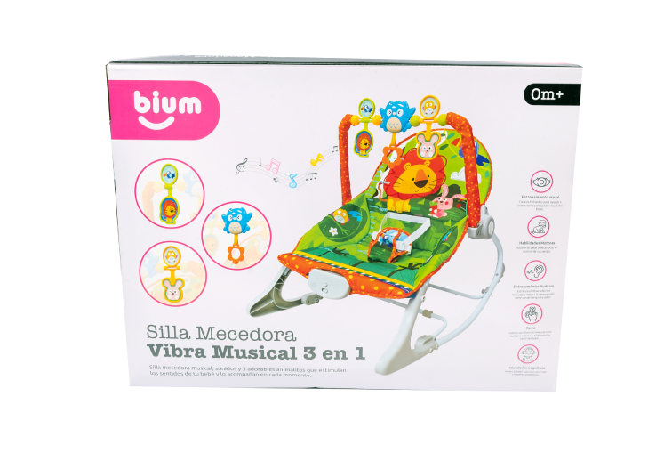Diseñada para envolver a tu bebé en un mundo lleno de color, movimiento y sonidos encantadores. Con un diseño alegre y ergonómico, esta mecedora acompaña las diferentes etapas del crecimiento, ofreciendo un espacio de descanso, juego y estimulación sensorial en un solo producto.