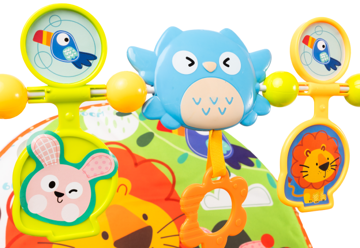 El suave balanceo brinda calma y confort, ayudando a relajar al bebé, mientras que los juguetes desmontables pueden usarse individualmente para ampliar la diversión.